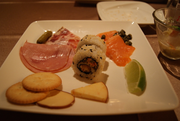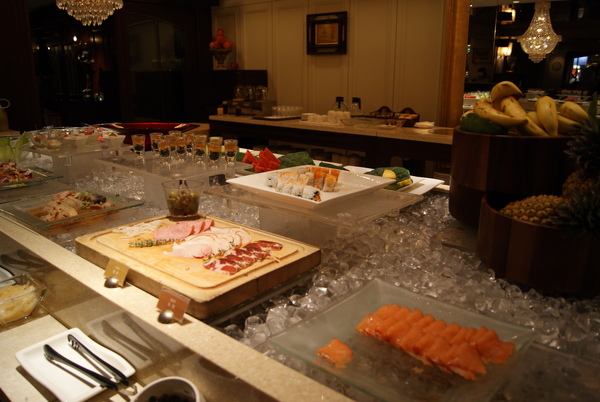 煙燻鮭魚和風乾牛肉都相當美味~~另外還有醉雞、冷菜、花壽司、生菜沙拉、各式水果,不點主菜光吃這些真的會飽!