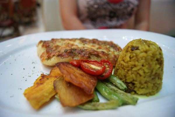 阿丸的香煎魚排,上面鋪著一層起司~香料米飯也不錯吃!