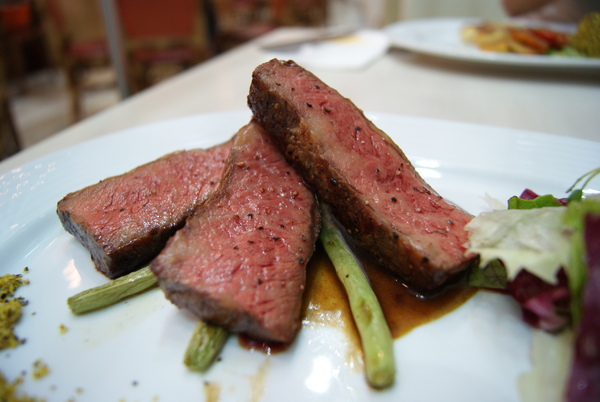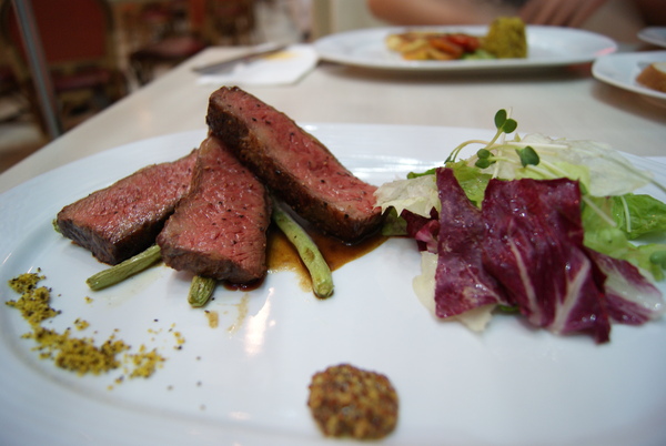 7分熟的紐西蘭牛小排,就算不沾檸檬鹽或法式芥末,一樣順口香甜~