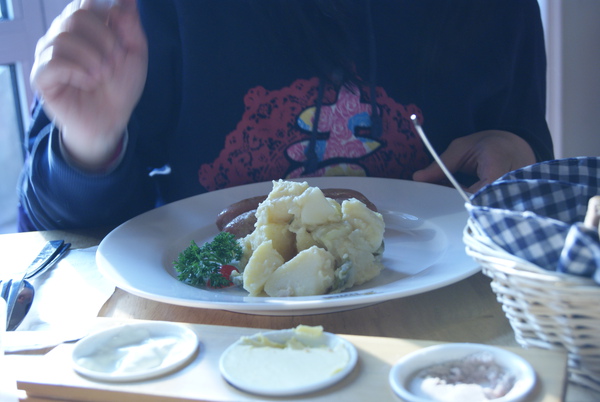 餐廳很大、有2層樓。樓上傳來熱鬧的巴伐利亞舞曲,原來是老闆在做員工訓練~